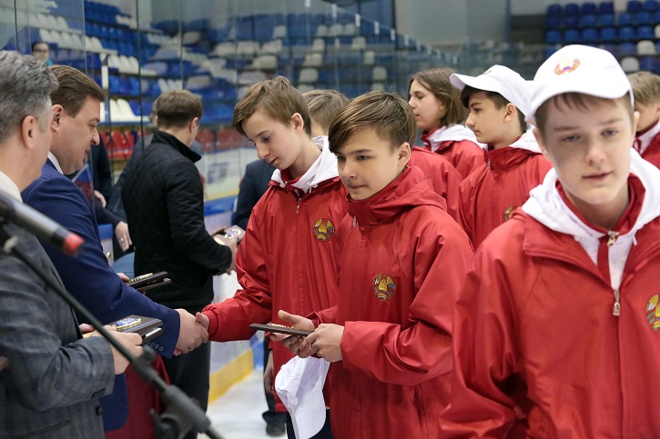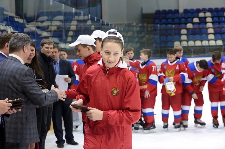 Соревнования школьников по хоккею с шайбой "Россия-Беларусь". Церемония закрытия